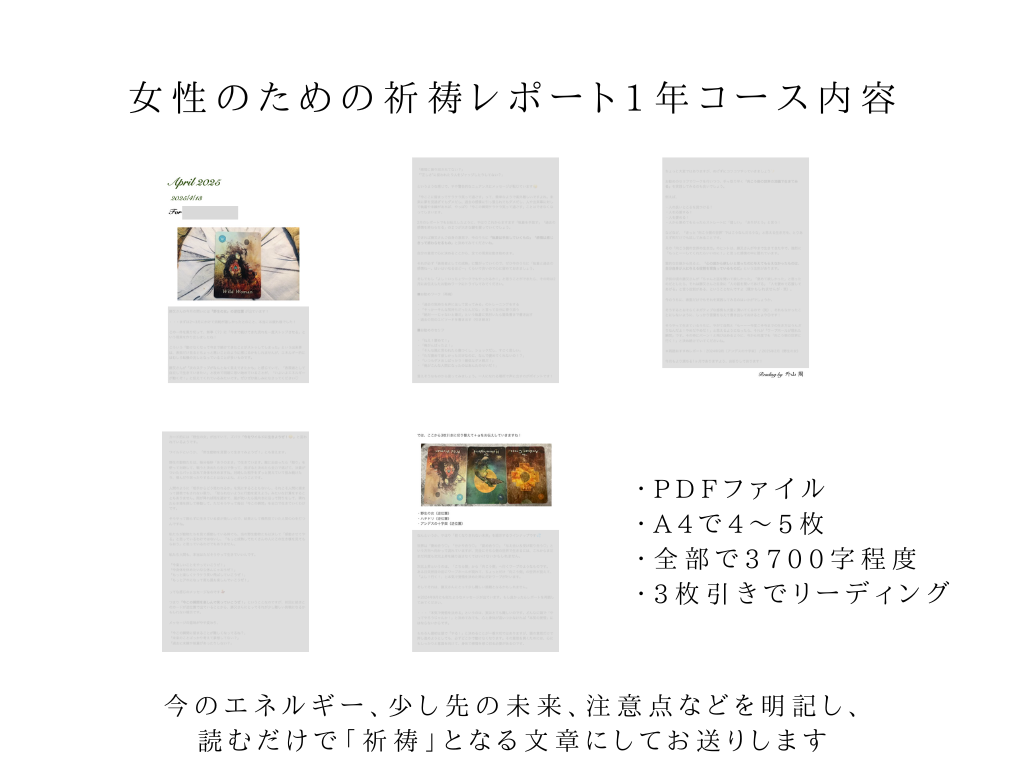 ・2ヶ月に1回、ディープなリーディングを元に「祈りのレポート」をPDFでお届け